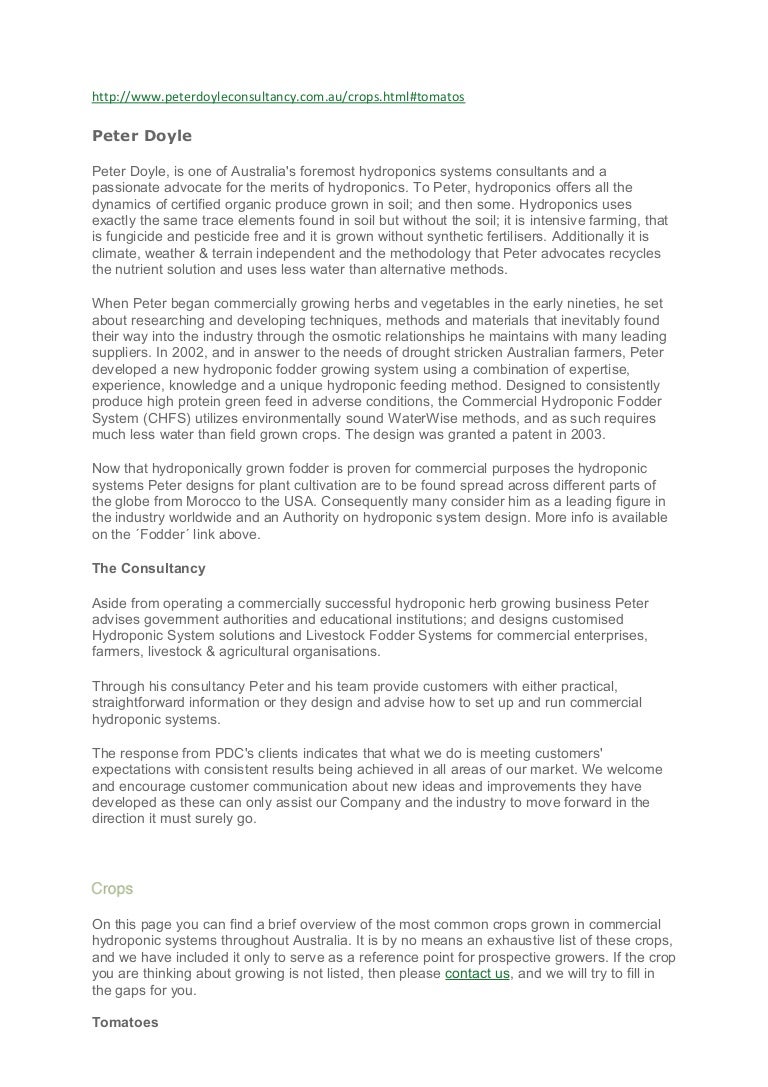 Peter Doyle Consultancy Commercial Hydroponic Systems