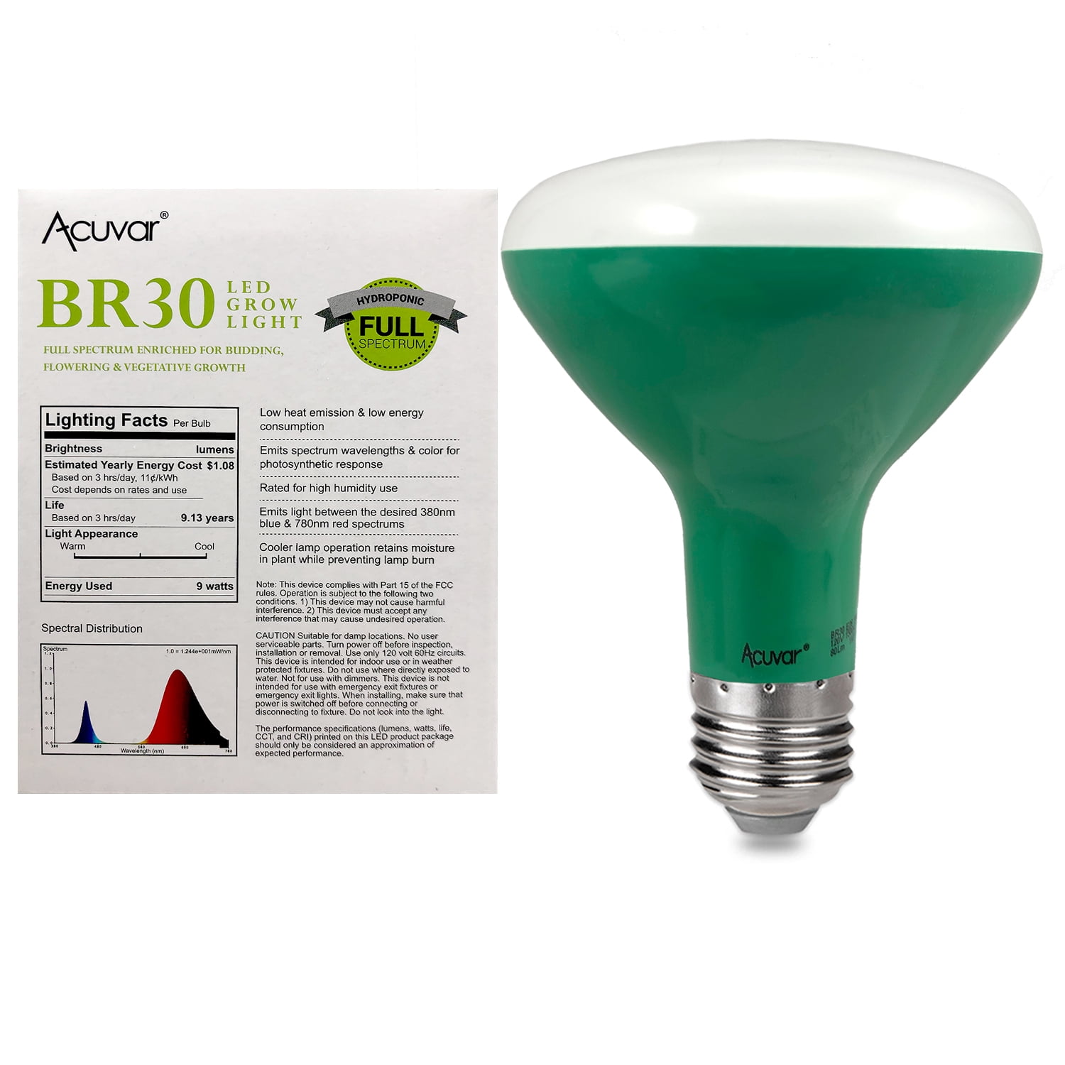 4 Acuvar Br30 9w E26 Led Grow Light Bulb Hydroponic Full Spectrum